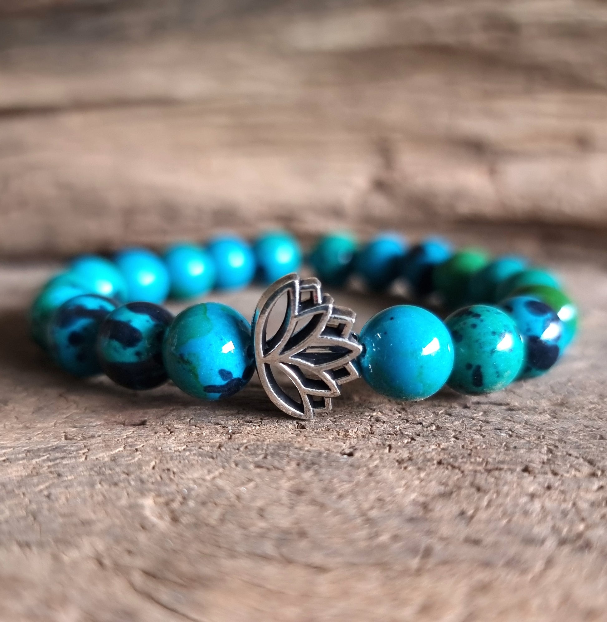 AZURITE & CHRYSOCOLLA LOTUS ENERGY BRACELET 10 mm - PERSONAL POWER