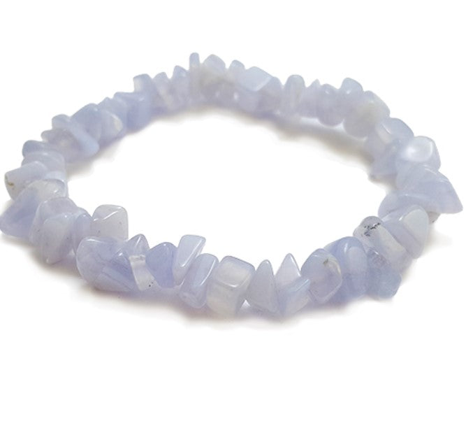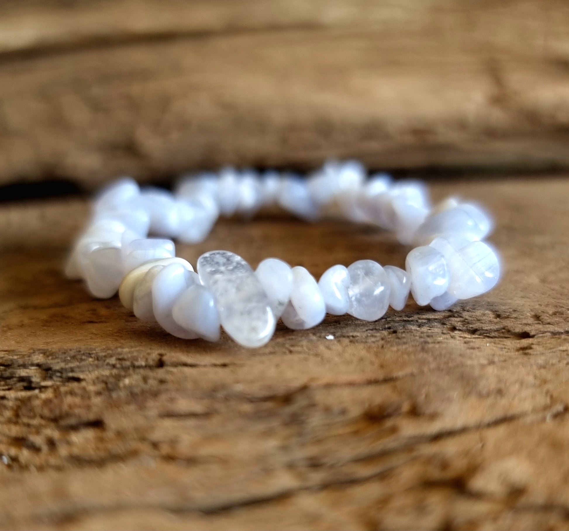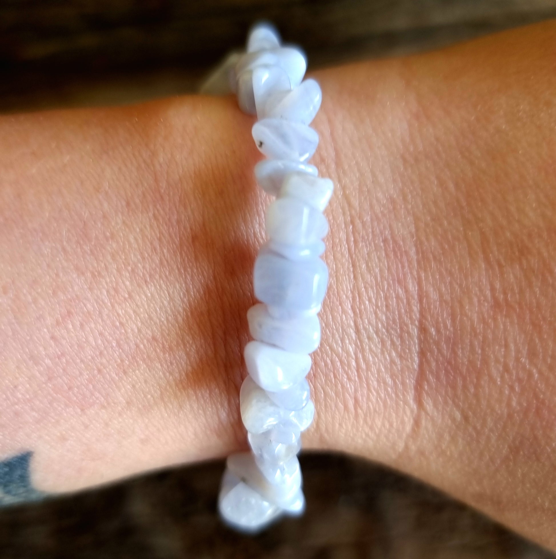 This BLUE LACE AGATE CHIPPED BRACELET is crafted with the healing emotional and energetic power of Blue Lace Agate. It will help bring on a sense of peace, balance, and hope, while empowering you to build relationships and embrace forgiveness. Enjoy the confident, optimistic energy of this bracelet.