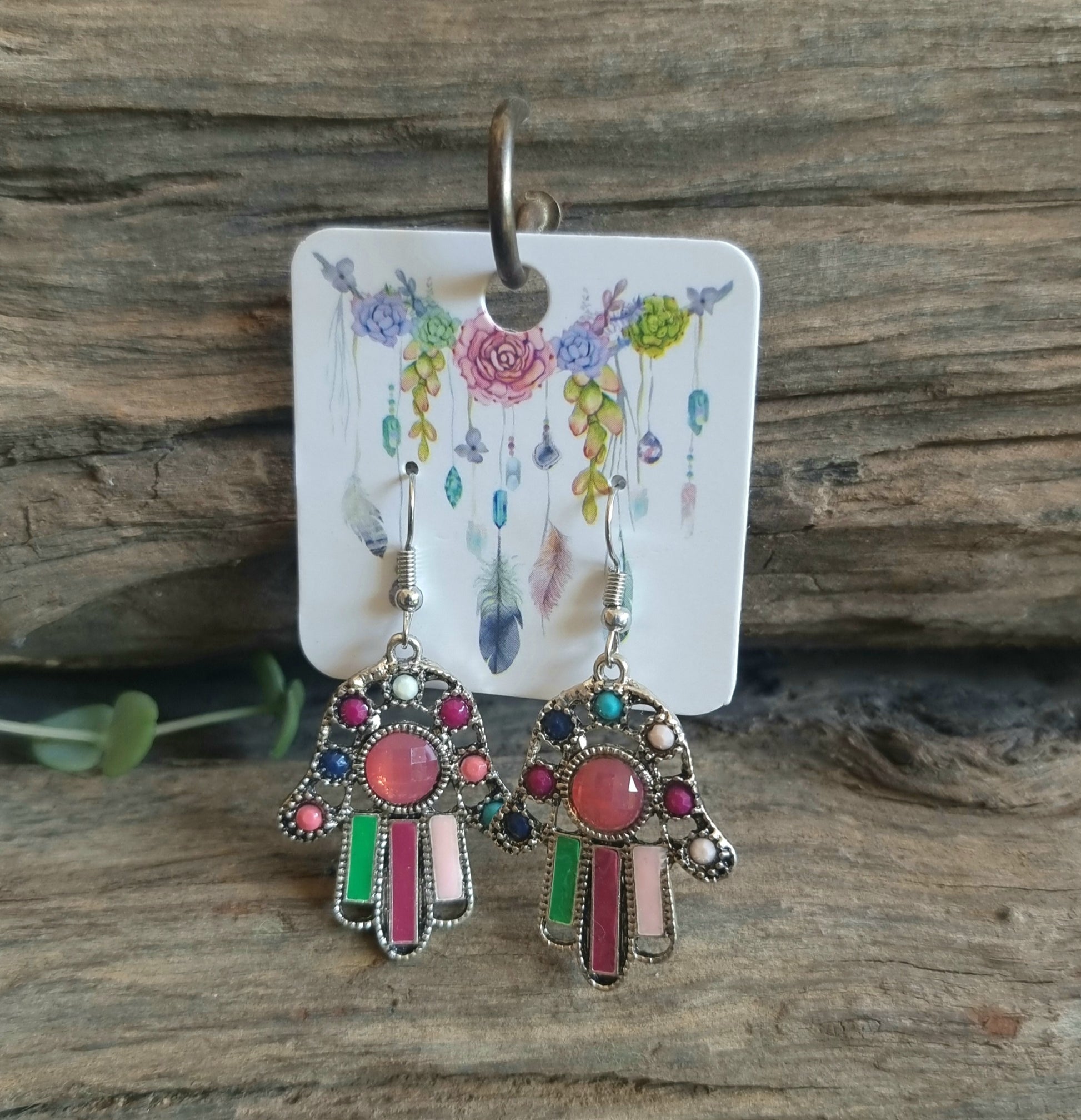 HAMSA HAND WITH PINK EARRINGS - PROTECTION
