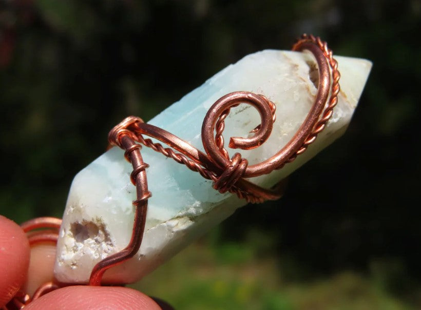 SMITHSONITE DOUBLE TERMINATED COPPER WIRE WRAPPED NECKLACE