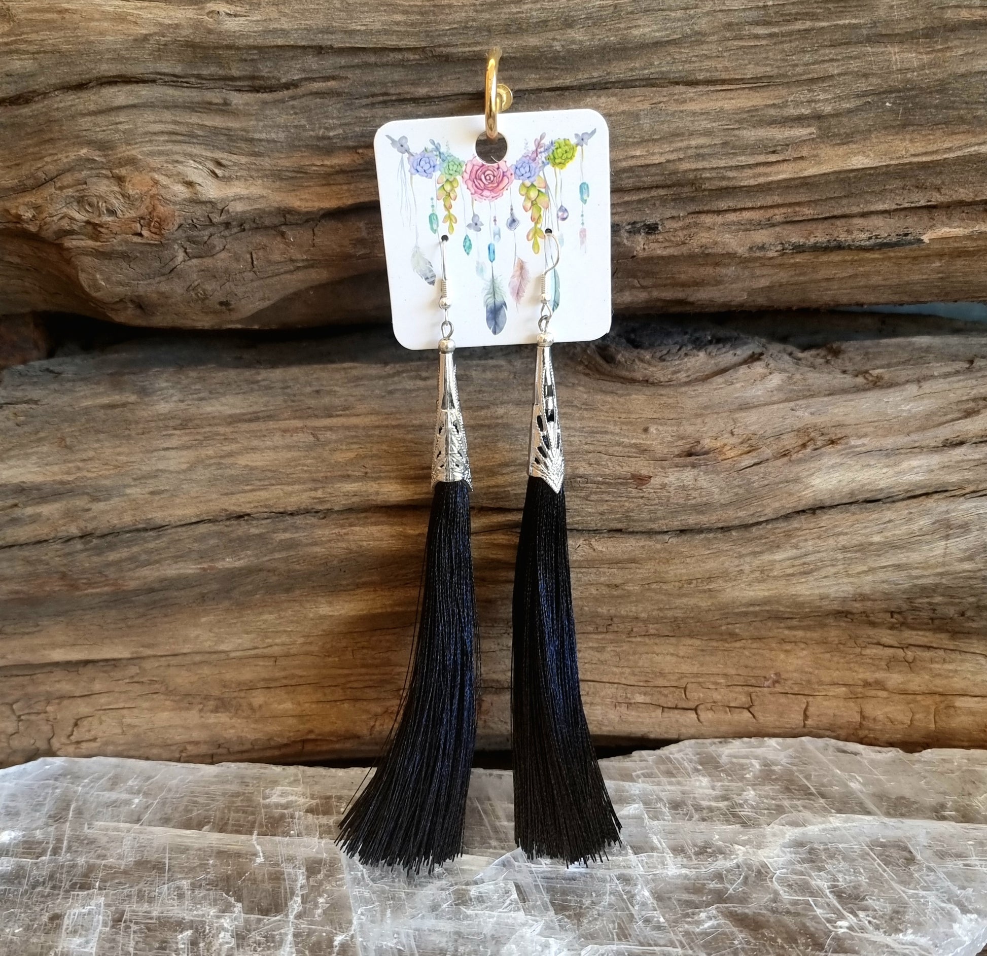 BLACK LONG TASSLED EARRINGS