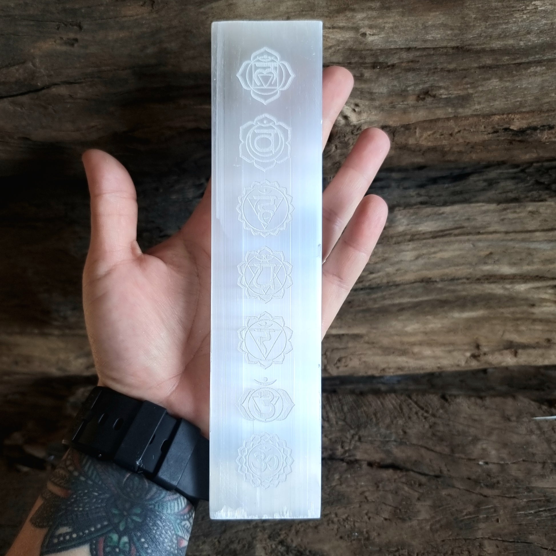 SELENITE FLAT ENGRAVED 7 CHAKRAS - ANGELIC GUIDANCE
