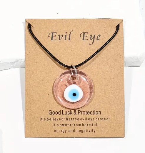 TRANSPARENT PINK EVIL EYE NECKLACE 3cm - PROTECTION