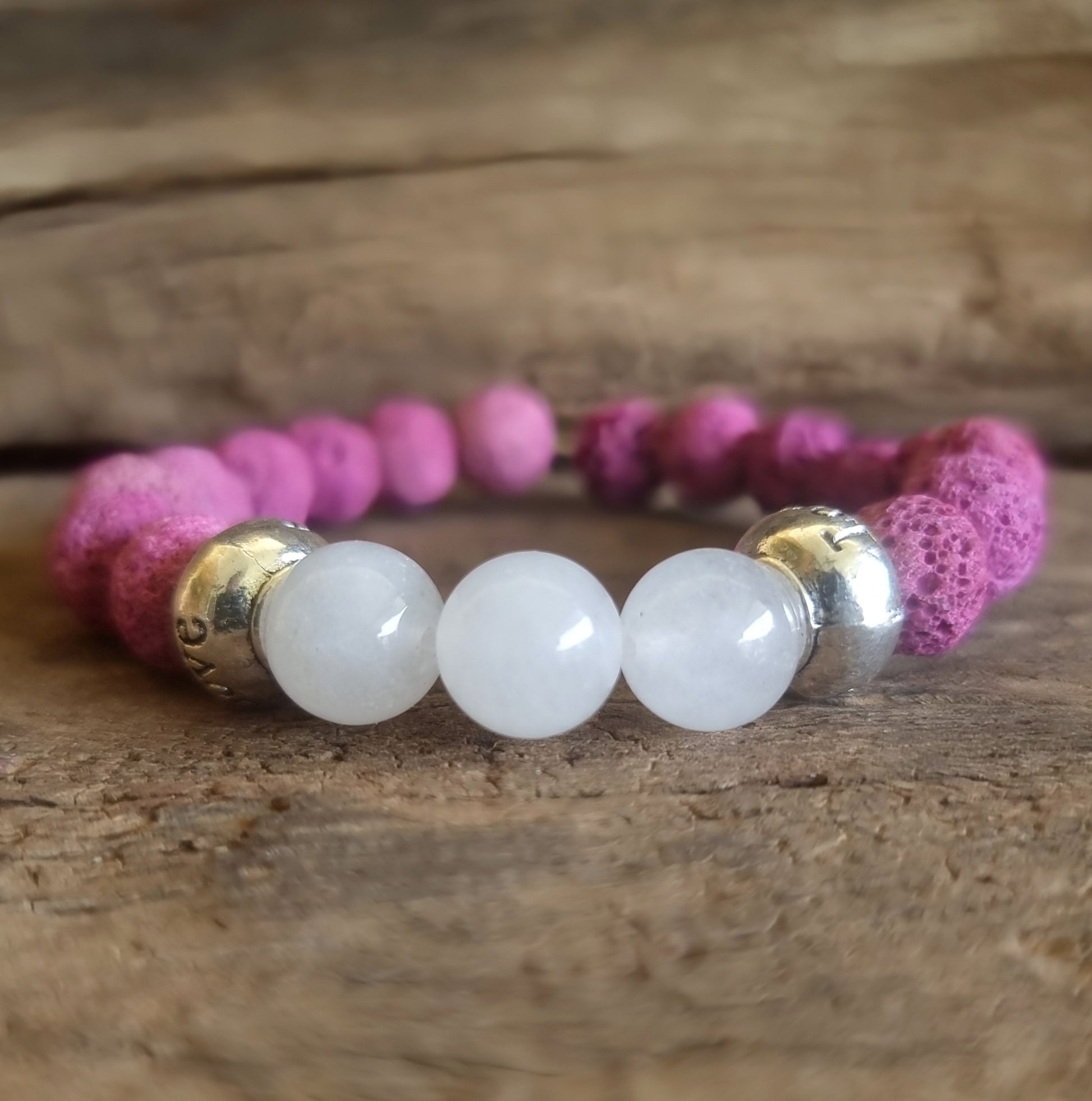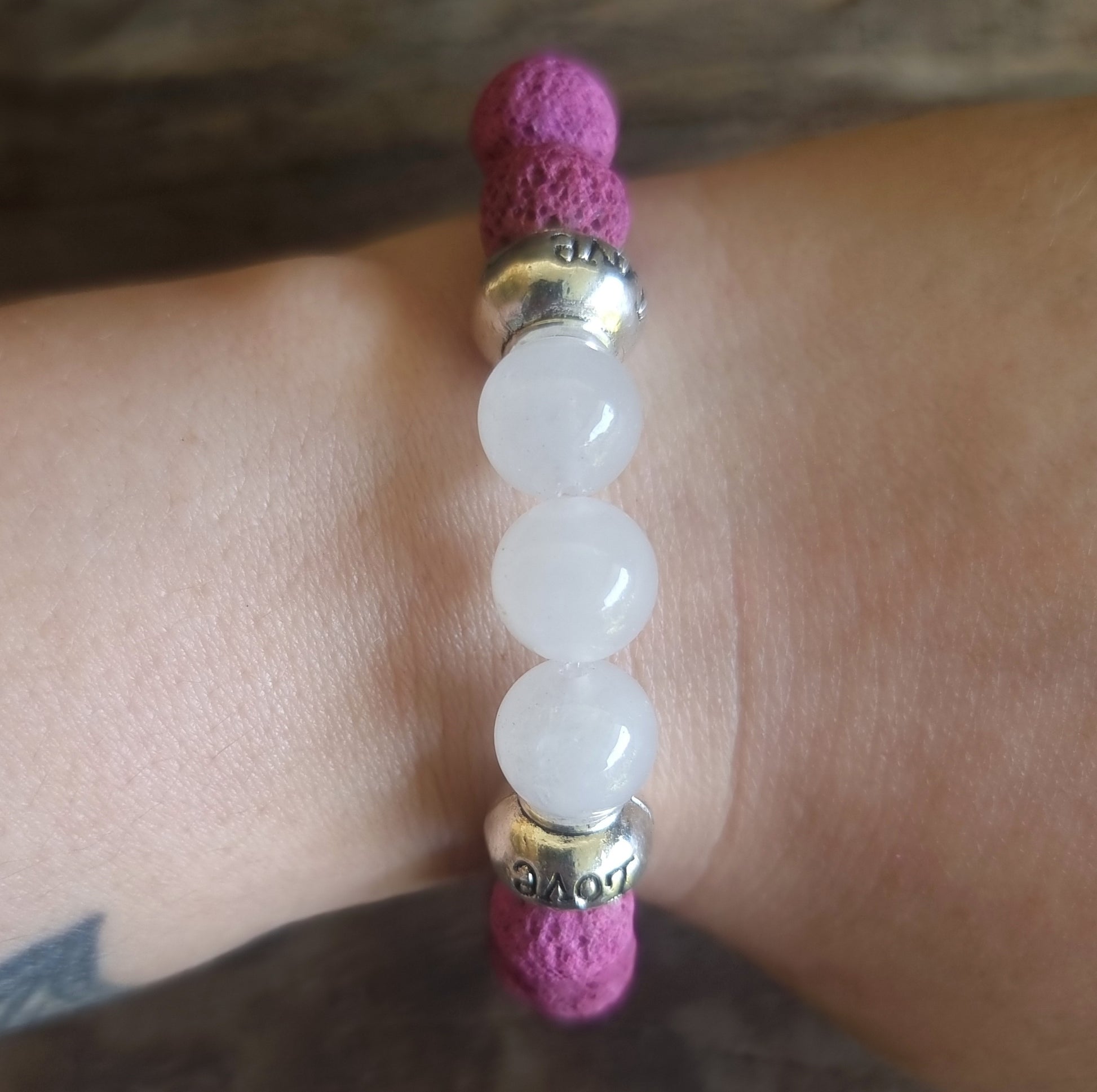 LAVA STONE & ROSE QUARTZ ESSENTIAL OIL DIFFUSER BRACELET