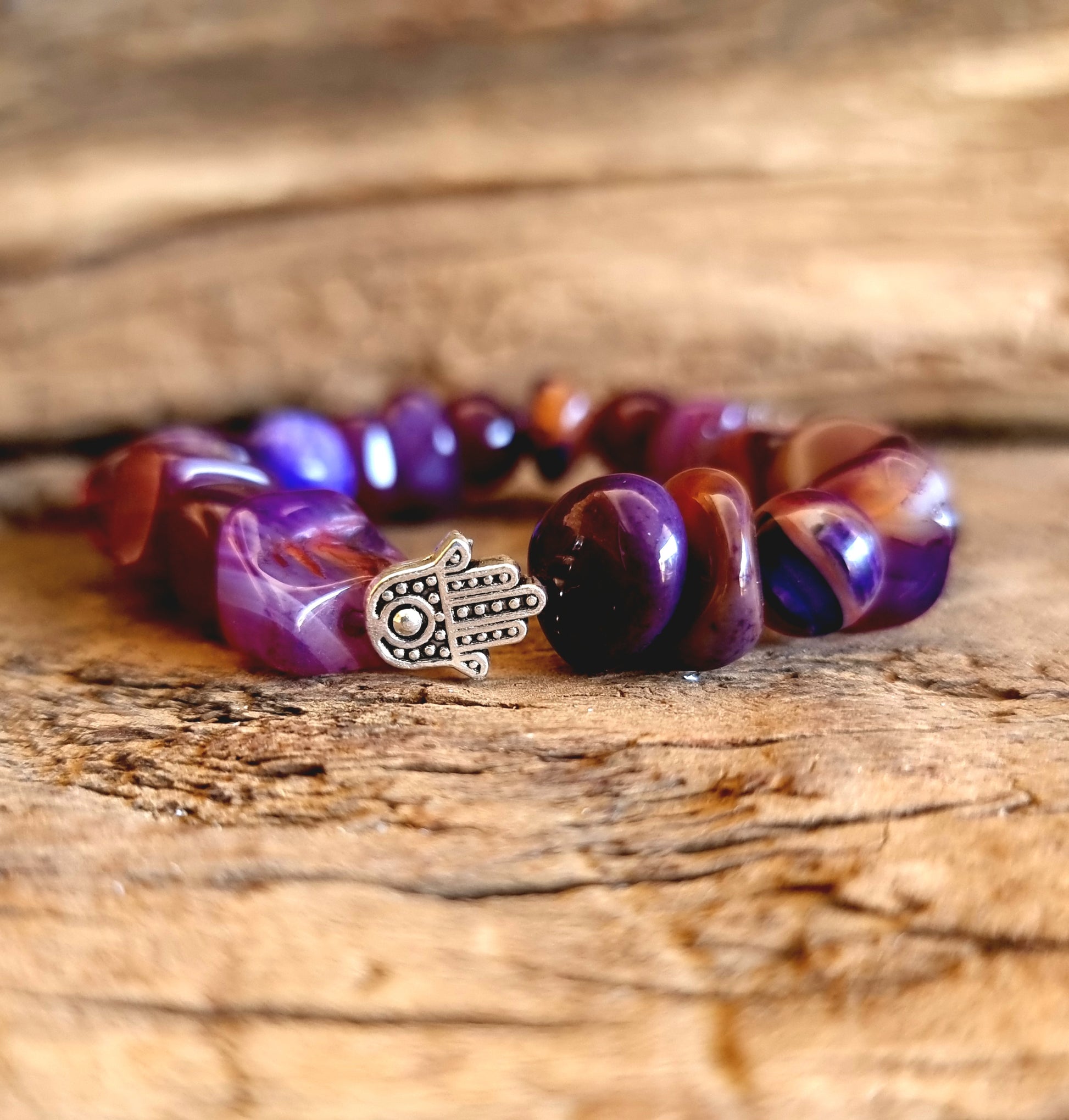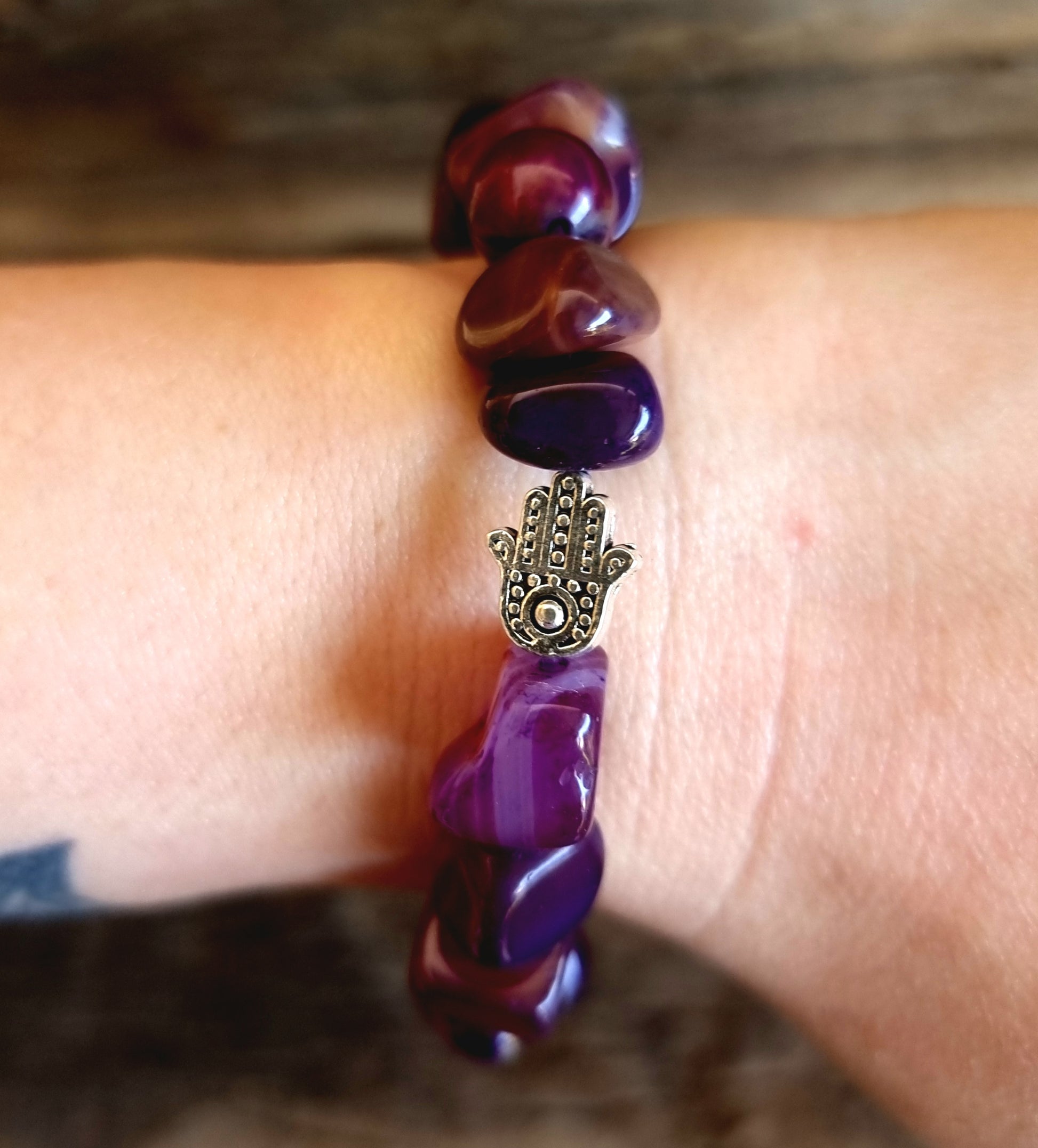 PURPLE AGATE HAMSA HAND NUGGET BRACELET - SELF CONFIDENCE