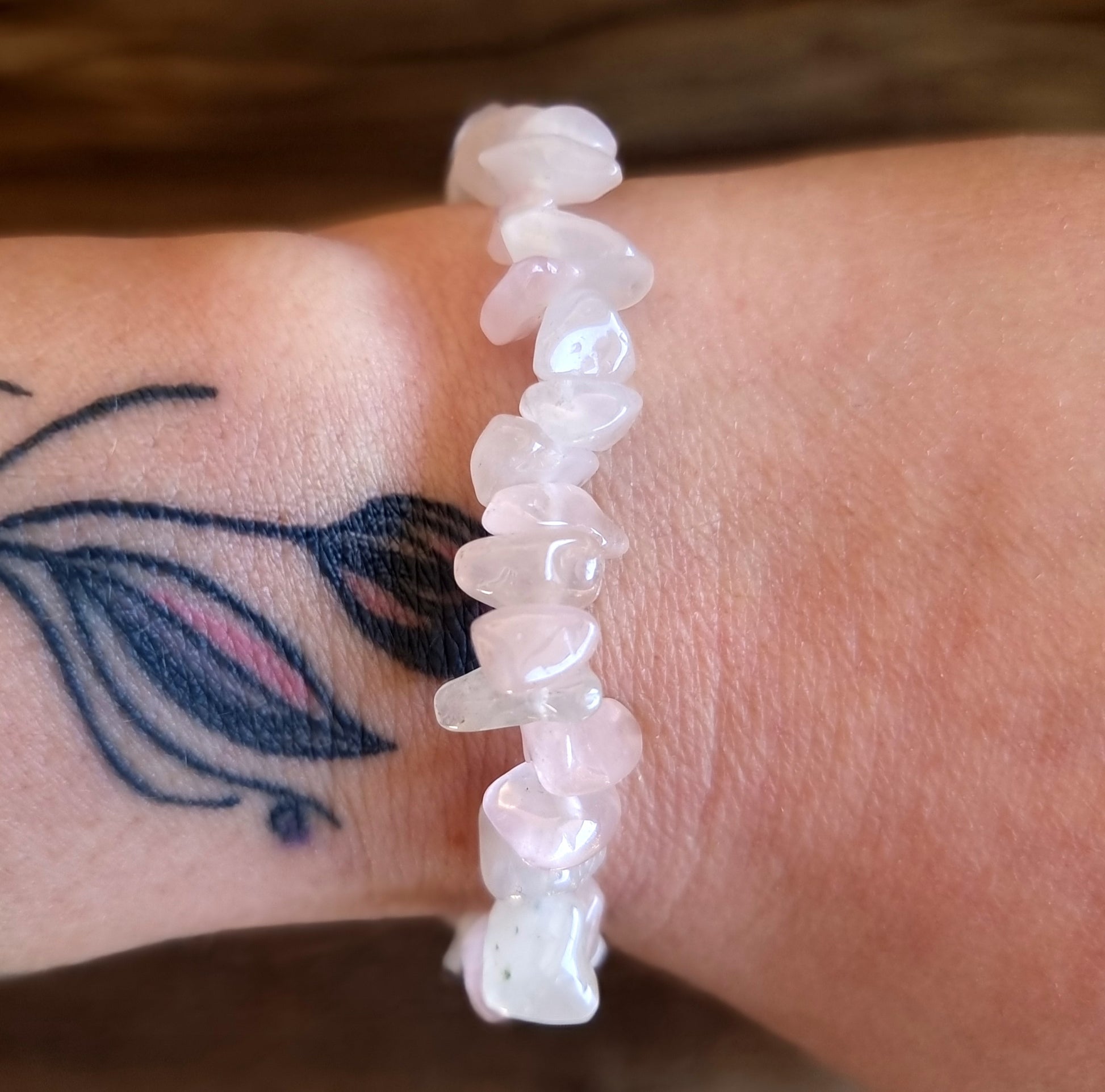 Wear the Rose Quartz Chipped Bracelet to invite in love, peace, and emotional renewal — from within and all around you 💞🧘♀️.