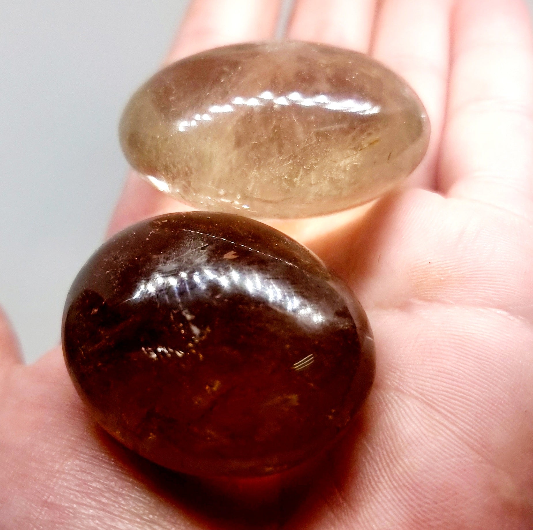 POLISHED LIGHT & DARK SMOKY QUARTZ PALM STONES - GROUNDING & PROTECTION