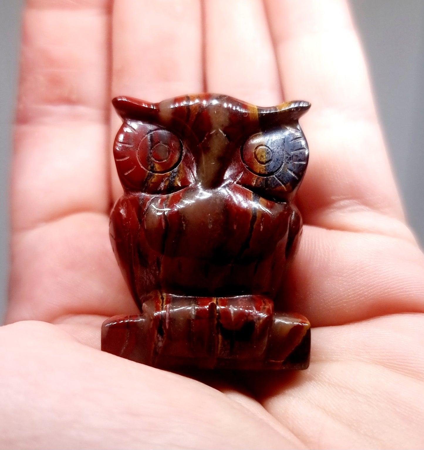 TIGER EYE CARVED OWL 4 cm - COURAGE & PROTECTION